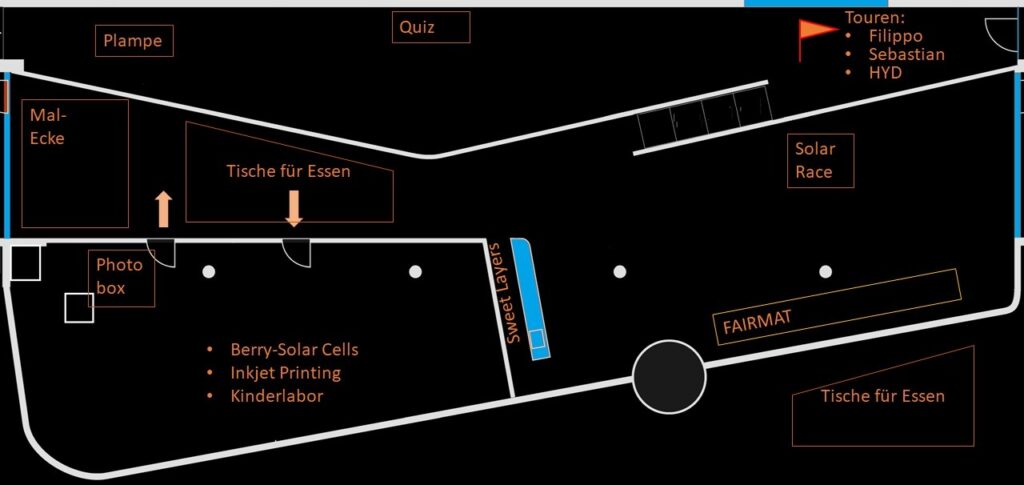 - „Das fantastische Kinderlabor“ (I slightly modified this one) Willkommen im fantastischen Kinderlabor! In Laborkittel, Schutzbrille und Handschuhen schlüpfen Kinder in die Rolle echter Wissenschaftlerinnen und Wissenschaftler. In einer Miniatur-Glovebox mischen sie bunte „chemische“ Lösungen und bauen eine 3D-gedruckte Solarzelle – spielerisch und hands-on entdecken sie so, wie Forschung funktioniert und wie Solarenergie entsteht.